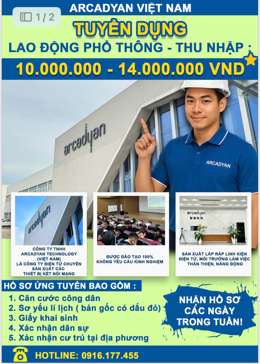 Công ty TNHH Arcadyan Technology - Việt Nam là công ty với 100% vốn đầu tư của Đài Loan, chuyên sản xuất các thiết bị kết nối mạng. Công ty đặt tại lô D4-5-6 Khu công nghiệp Thăng Long 3, Thiện Kế,...