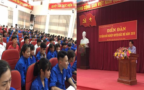Ngày 04/9/2018, Trung tâm Dịch vụ việc làm tỉnh Hà Giang đã tham gia diễn đàn tư vẫn khởi nghiệp huyện Bắc Mê năm 2018 do Ủy ban nhân dân huyện Bắc Mê đã tổ chức.